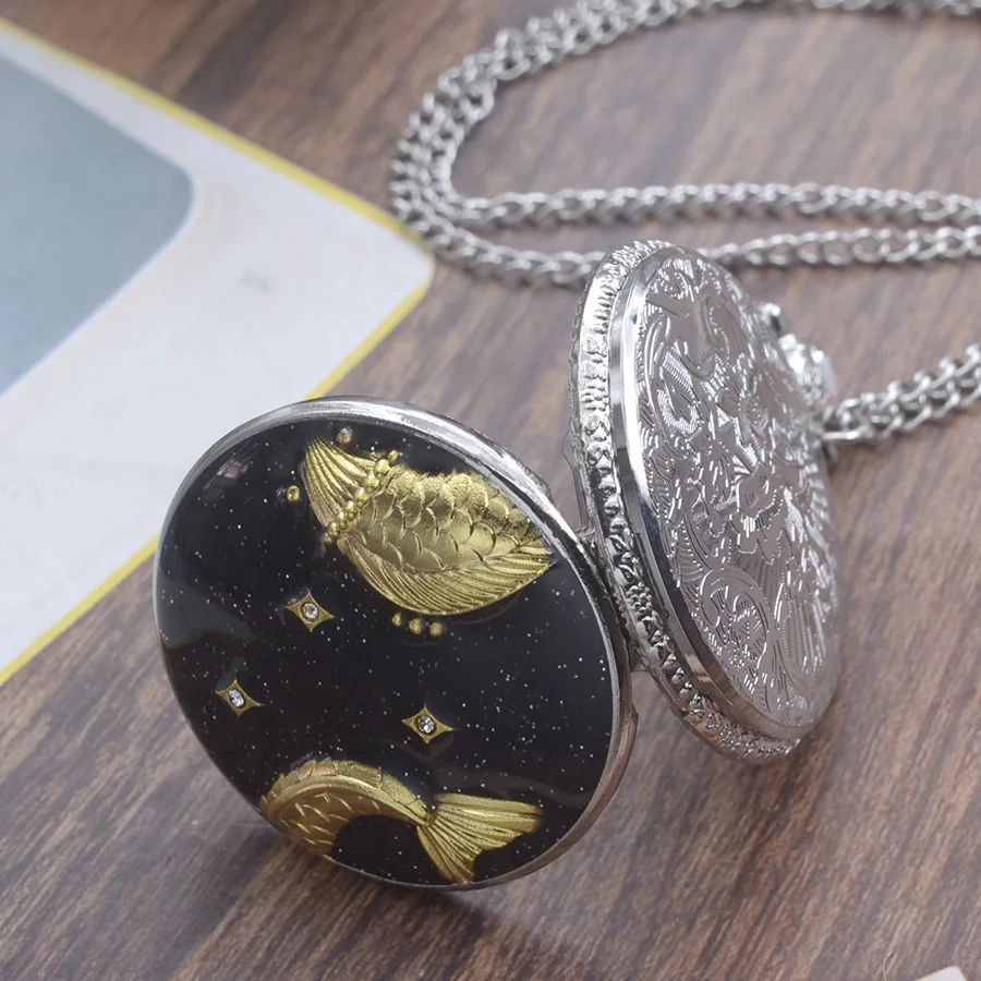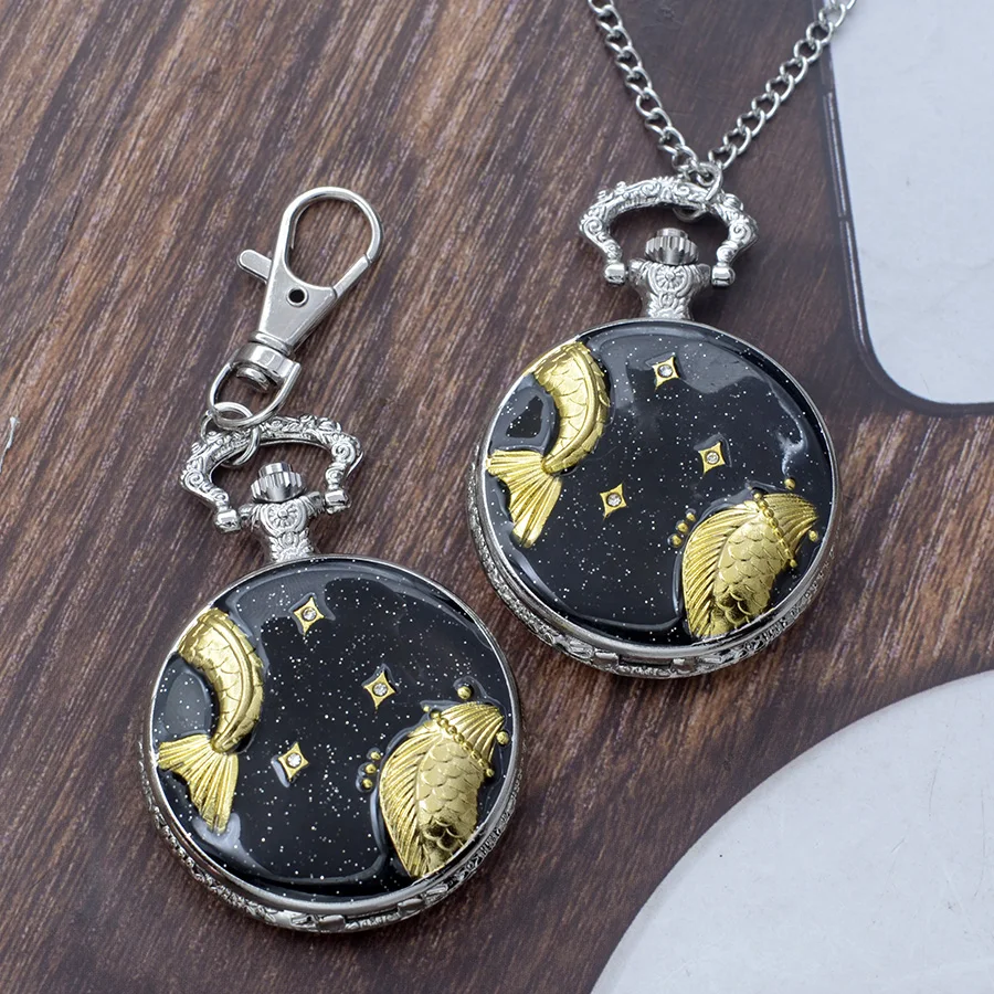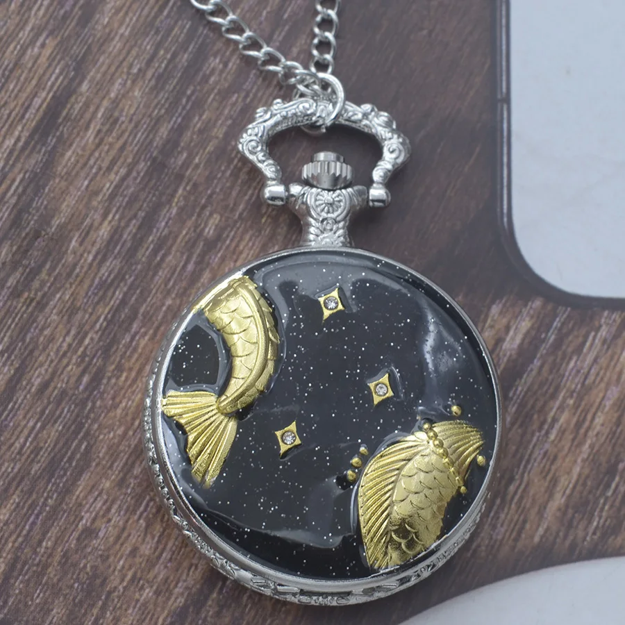الكثير خمر الفضة الذهب الأسماك الوجه الكوارتز الجيب ووتش الرجال النساء ووتش قلادة ووتش هدية بالجملة