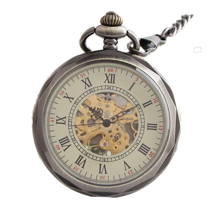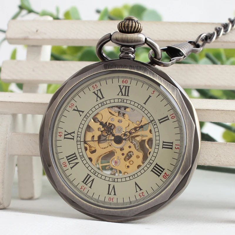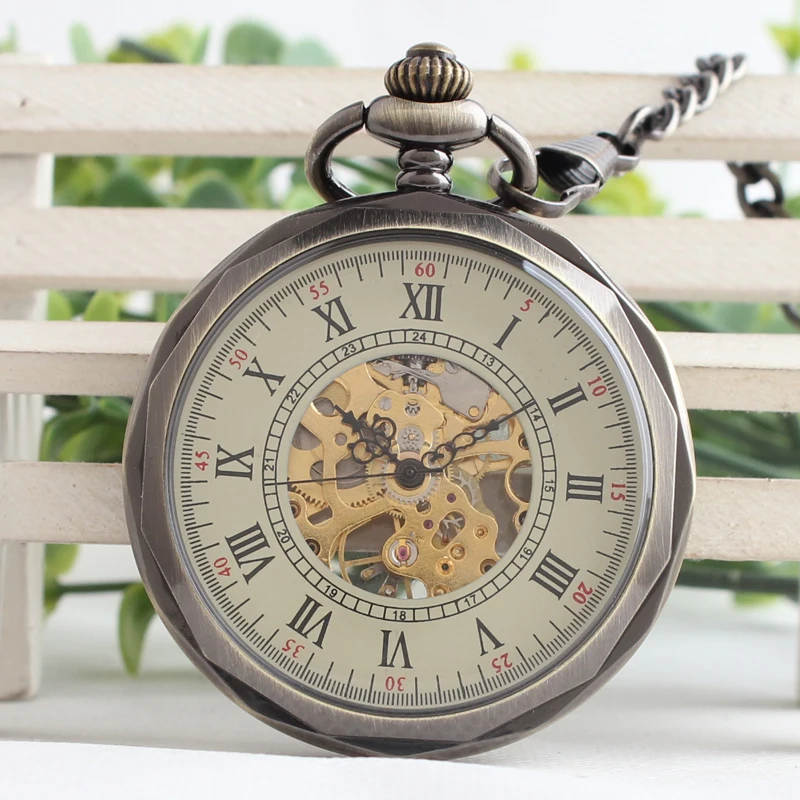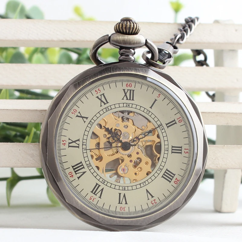 جديد وصول Bronze البرونزية لا غطاء الميكانيكية اليد الرياح ساعة جيب الرومانية الطلب الوجه جيب الساعات الرجال النساء هدية
