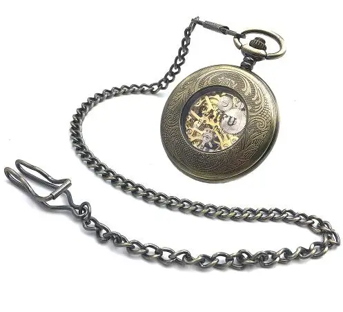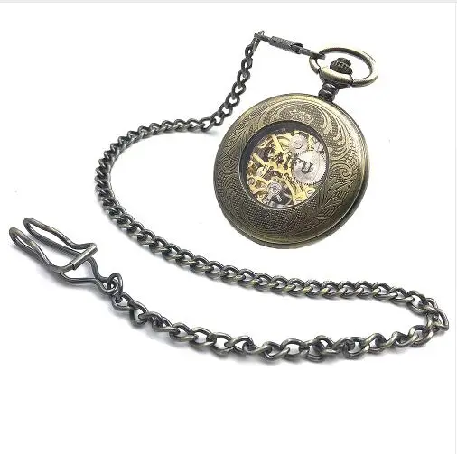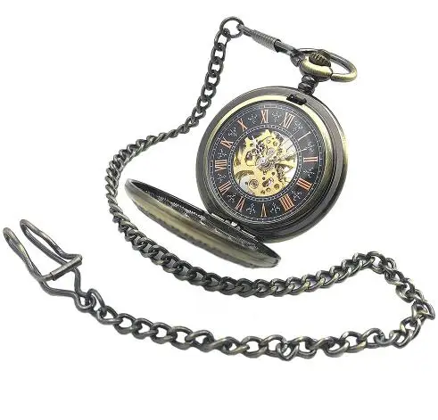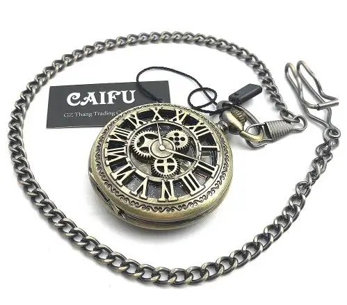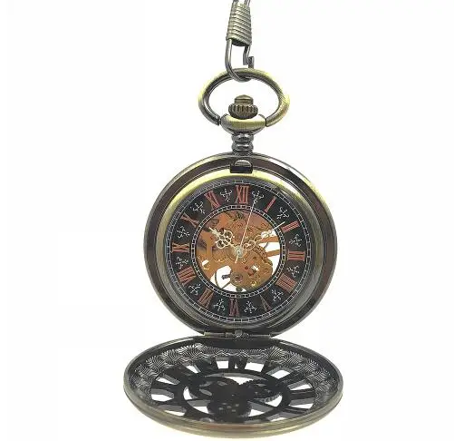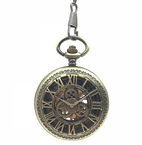حار بيع البرونزية جوفاء والعتاد الروماني عدد ساعة جيب الميكانيكية خمر اليد الرياح ساعة جيب ذات سلسلة بالجملة