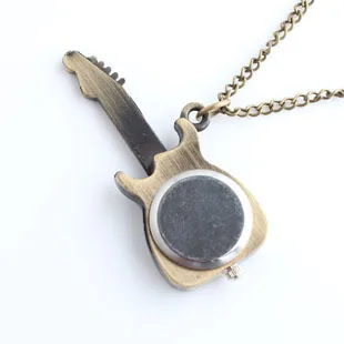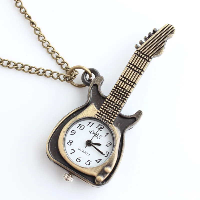100 قطعة/الوحدة خمر الغيتار كوارتز ساعة الجيب الرجال النساء ساعة قلادة ساعة هدية بالجملة