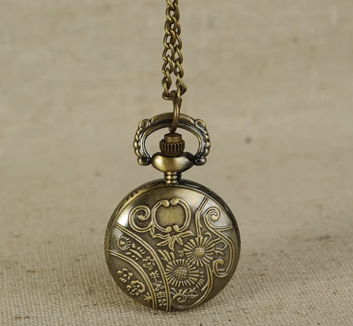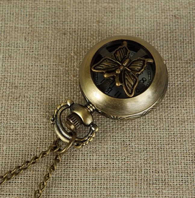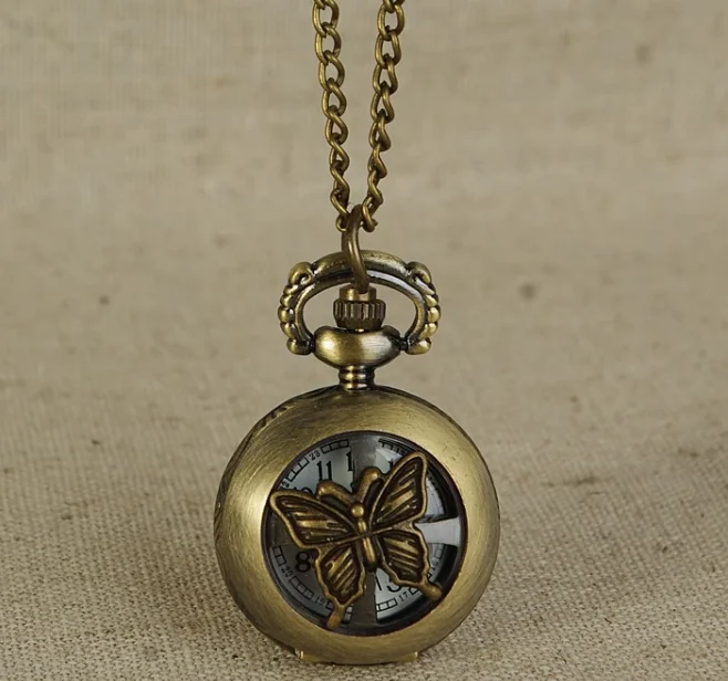 100 قطعة/الوحدة خمر البرونزية جوفاء فراشة كوارتز ساعة الجيب قلادة الرجال النساء حجم صغير قلادة هدية الساعات