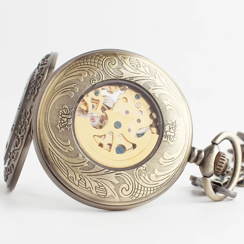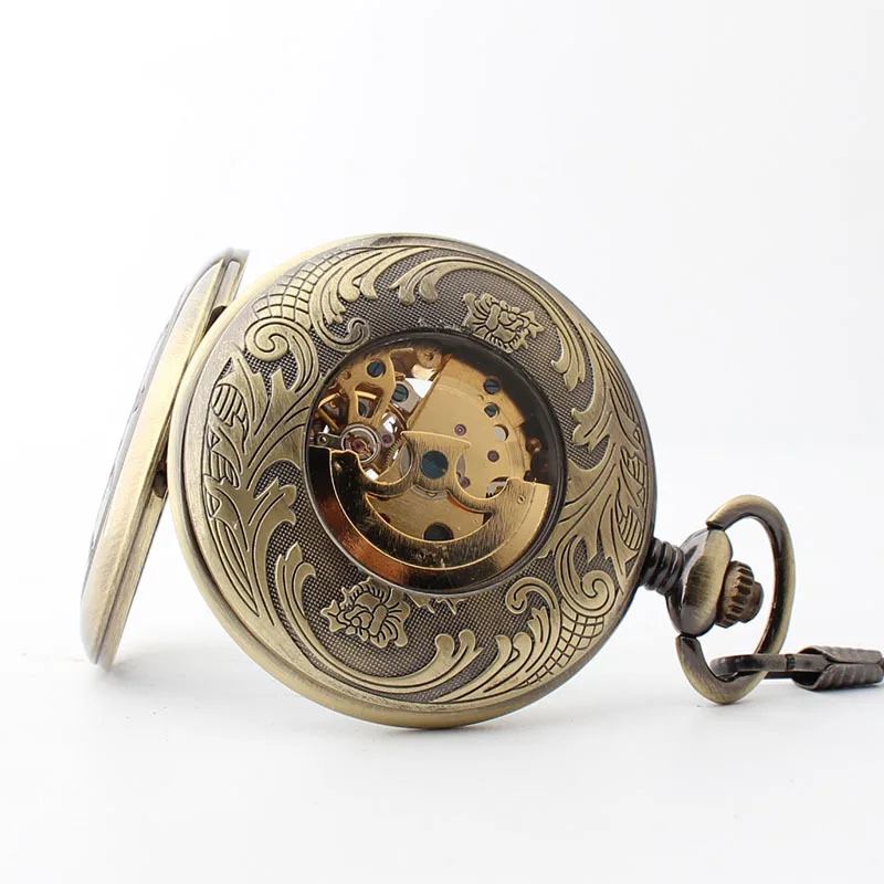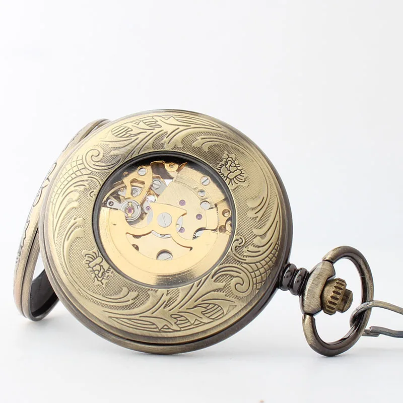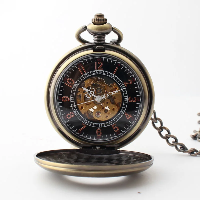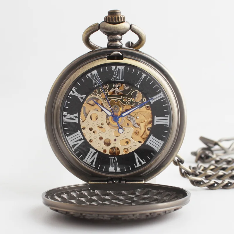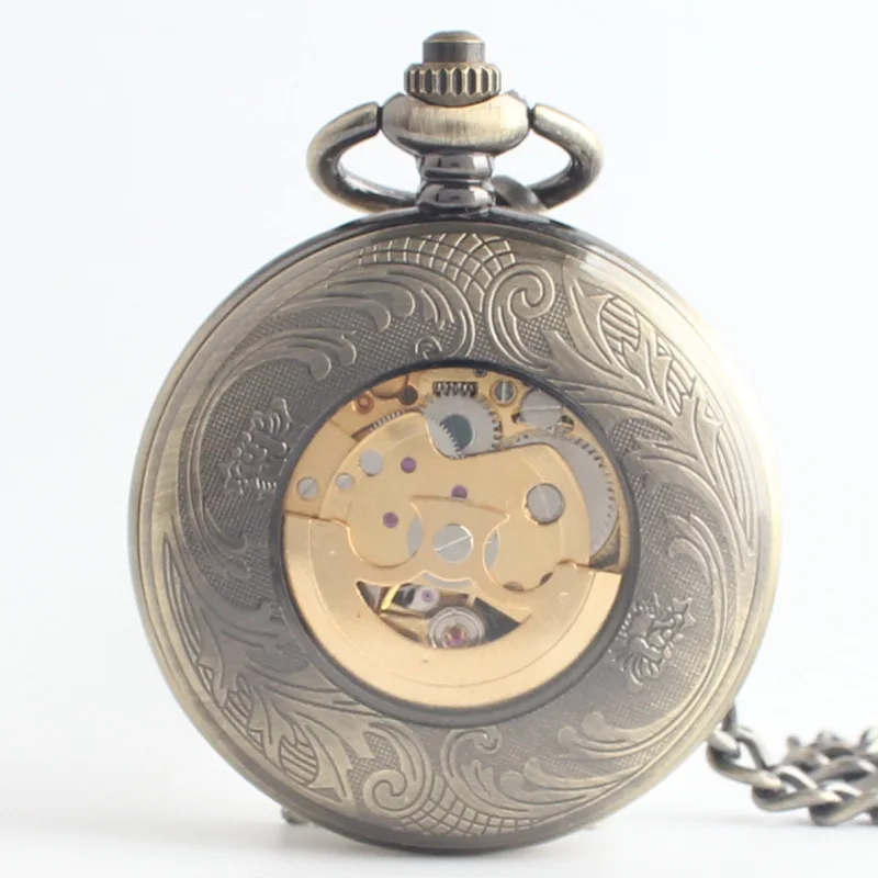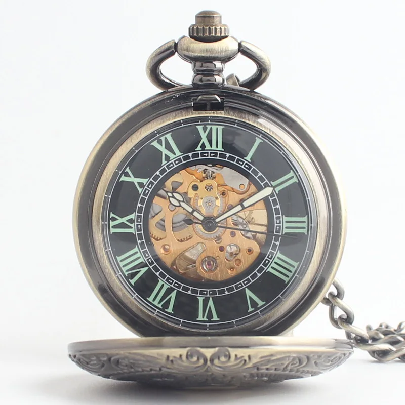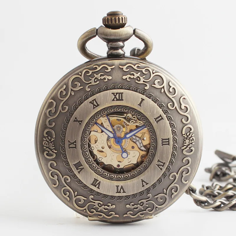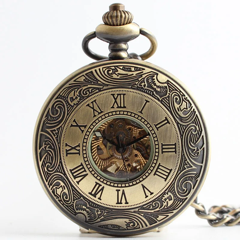 15 منقوشة 5 قطعة الفاخرة خمر ساعة الجيب الميكانيكية للرجال الذكور الهيكل العظمي Steampunk Orologio رجل فوب سلسلة العتيقة ساعة