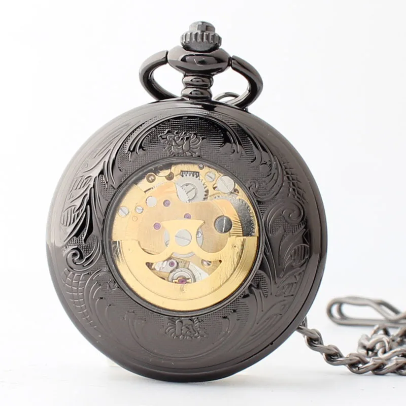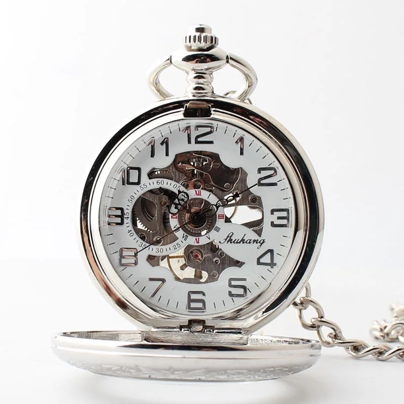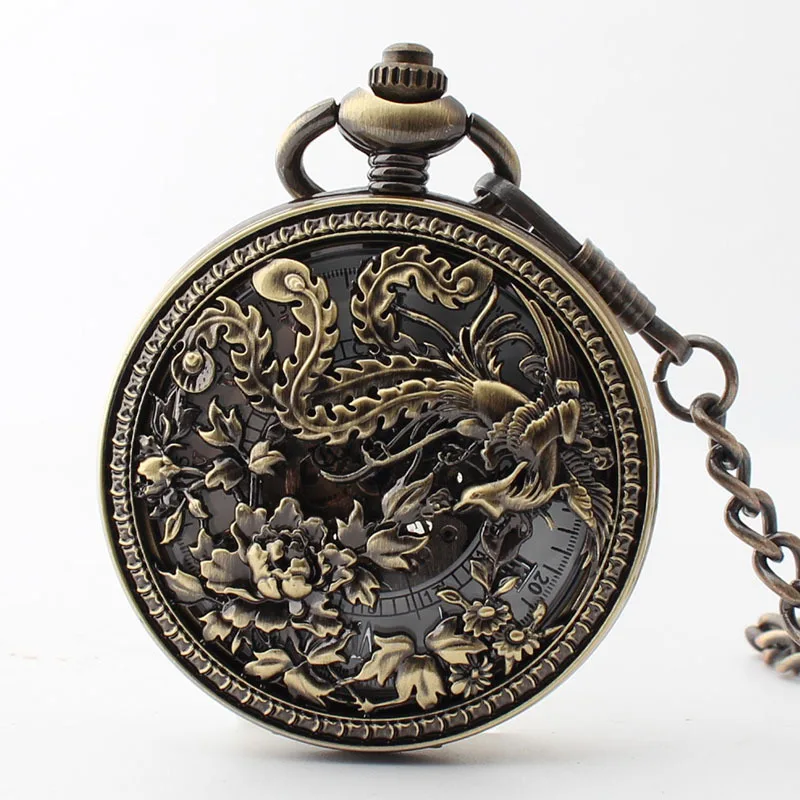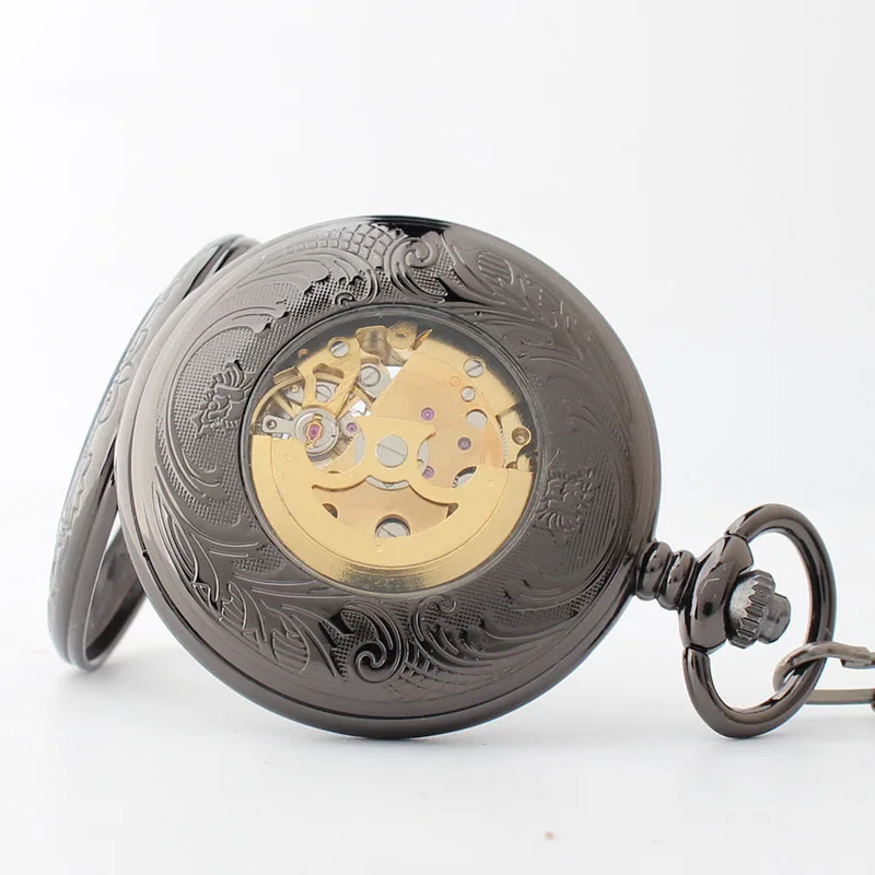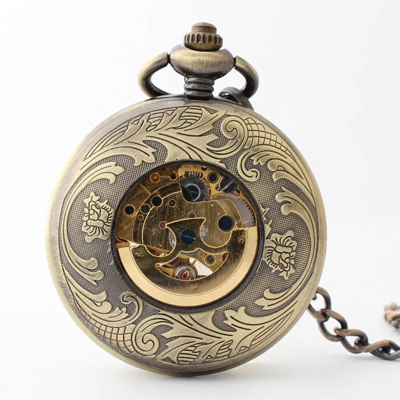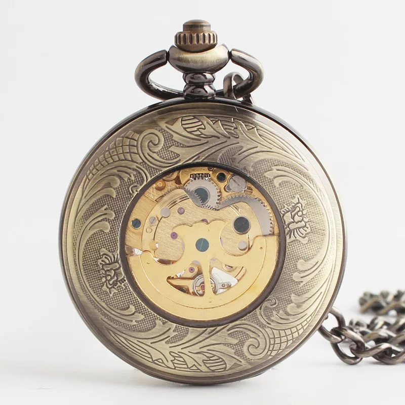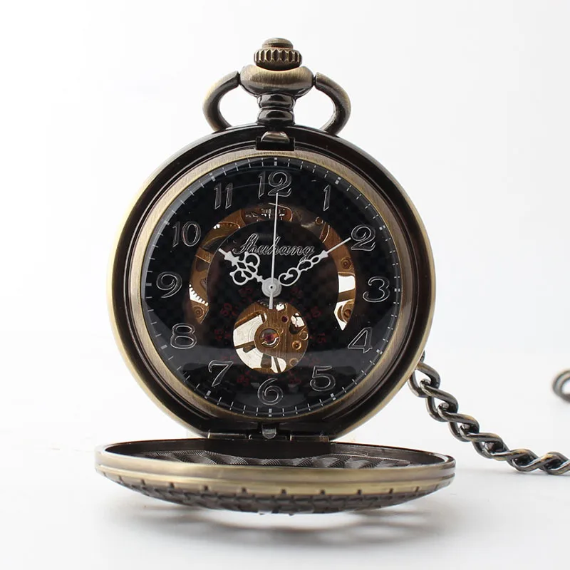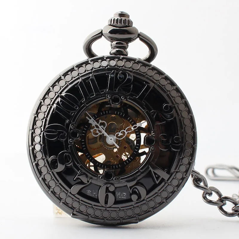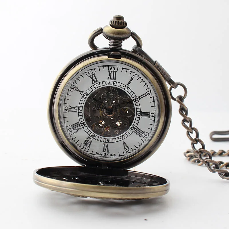 15 منقوشة 5 قطعة الفاخرة خمر ساعة الجيب الميكانيكية للرجال الذكور الهيكل العظمي Steampunk Orologio رجل فوب سلسلة العتيقة ساعة