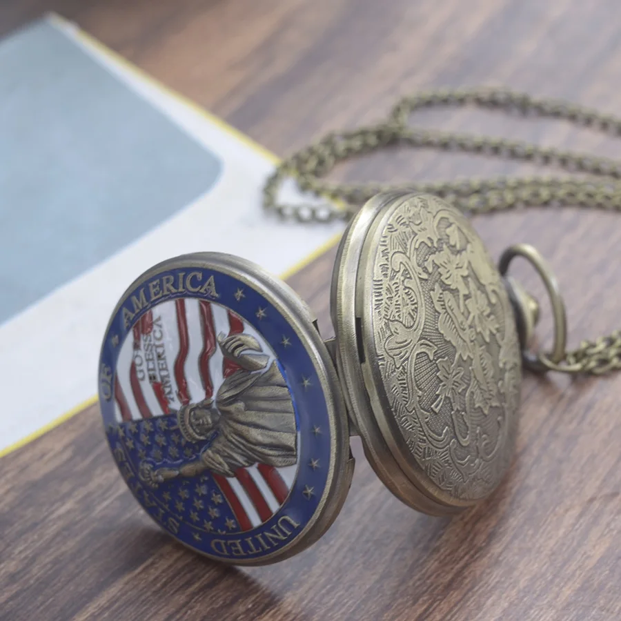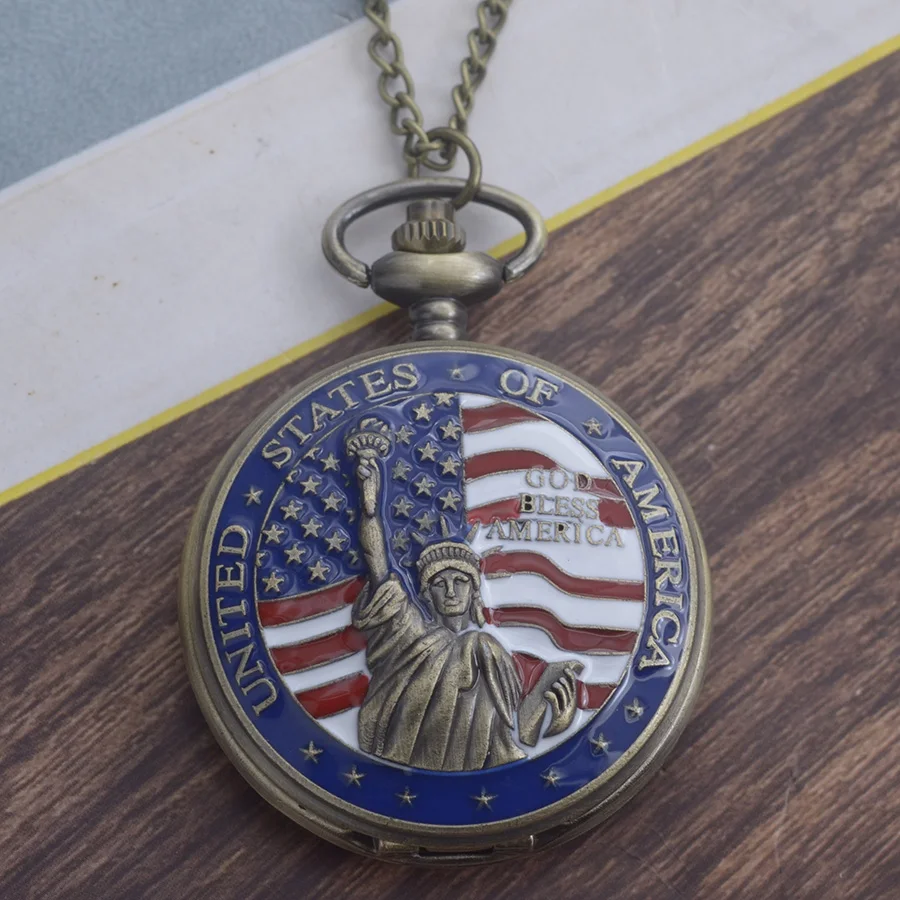 50 قطعة/الوحدة خمر تمثال برونز الحرية الوجه كوارتز ساعة الجيب الرجال النساء ساعة قلادة ساعة هدية بالجملة
